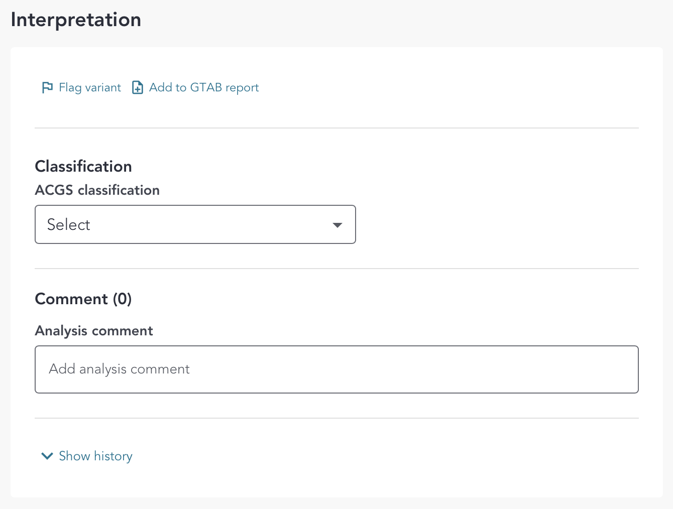 - View the classifications and comment history for the variant