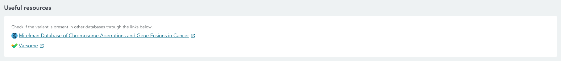 - Link outs to variant entries in external databases and resources