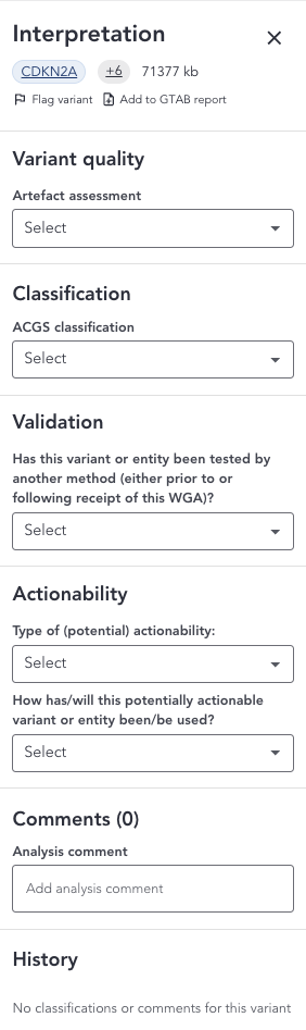 You can add interpretations and comments corresponding to a variant in the variant grid using the Interpretation drawer.