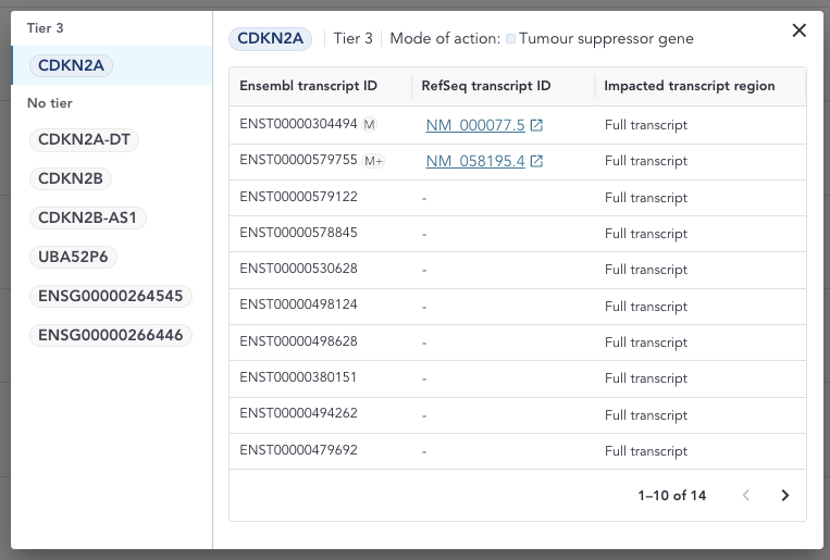 | 5 | Tier and gene | Tier and HGNC gene symbol(s) which the variant affects. We show the affected genes in the highest tier. |