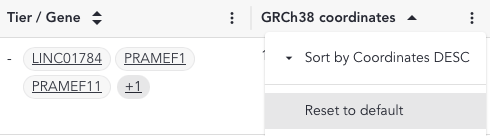 - To reset the variant grid to the default sorting order (by Tier) click the three dots on the column header and select 'Reset to default'