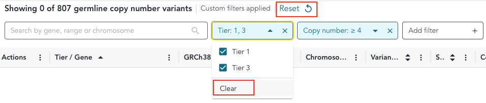 By default, the variant grid is filtered by Tier 1 and 3.