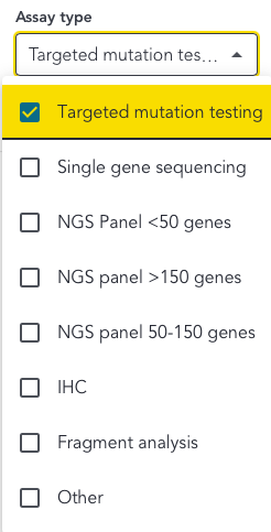 If your previous selection indicated the variant has been validated by another method, an "Assay type" dropdown will appear. To select which assay type(s) the variant has also been detected in, follow these additional steps: