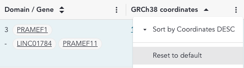 - To reset the variant grid to the default sorting order (by Domain) click the three dots on the column header and select 'Reset to default'